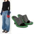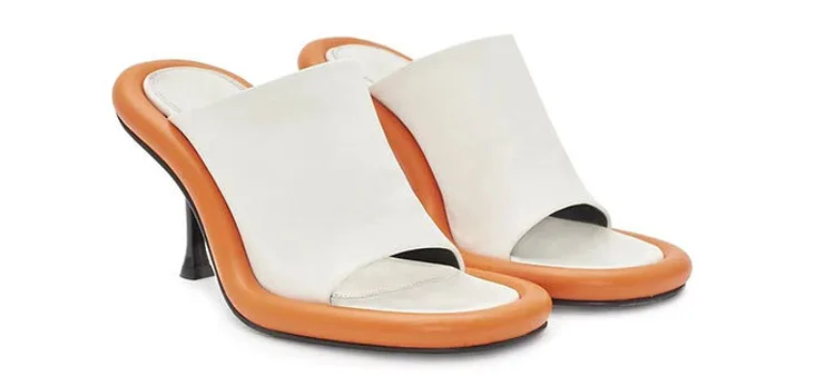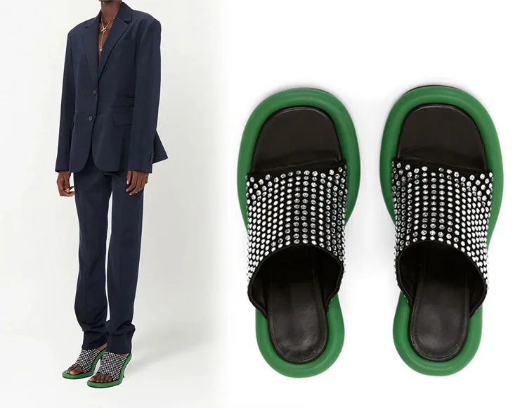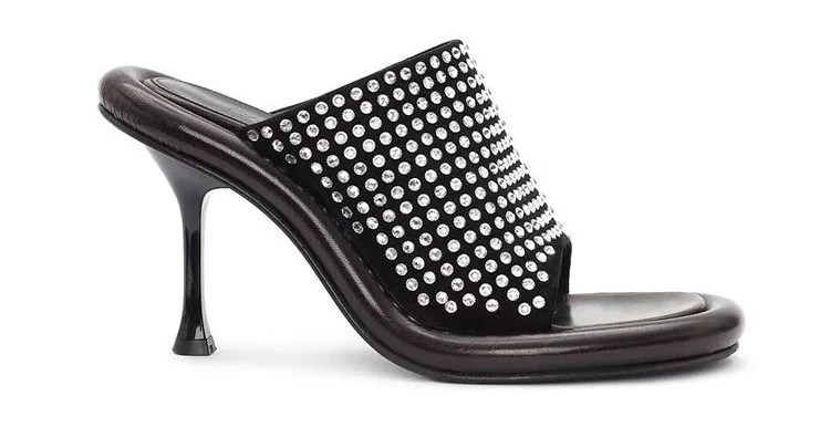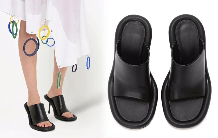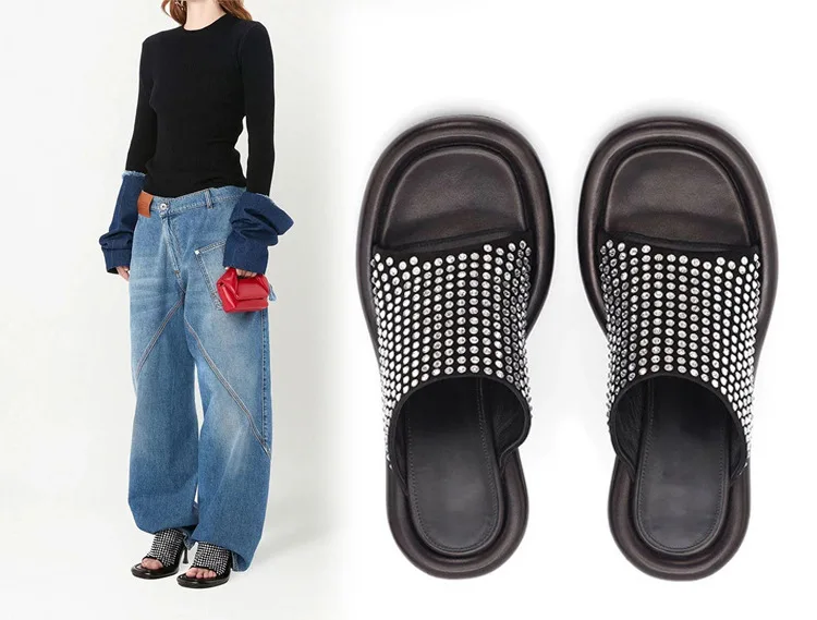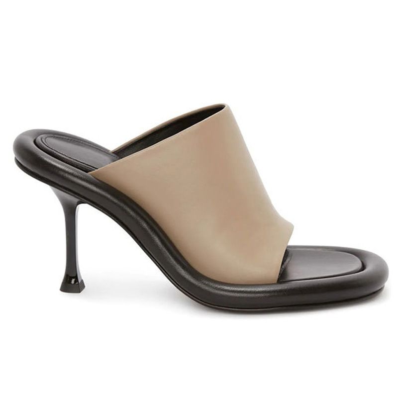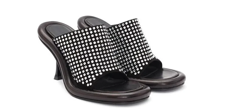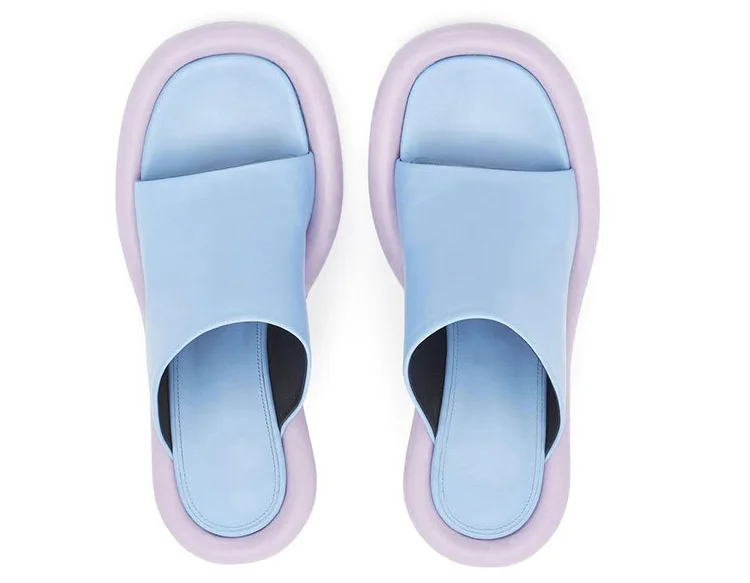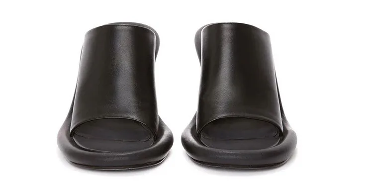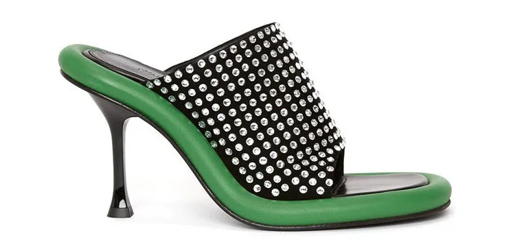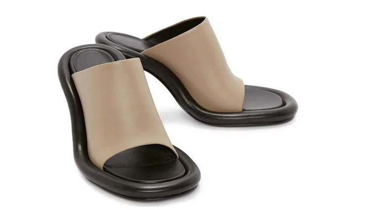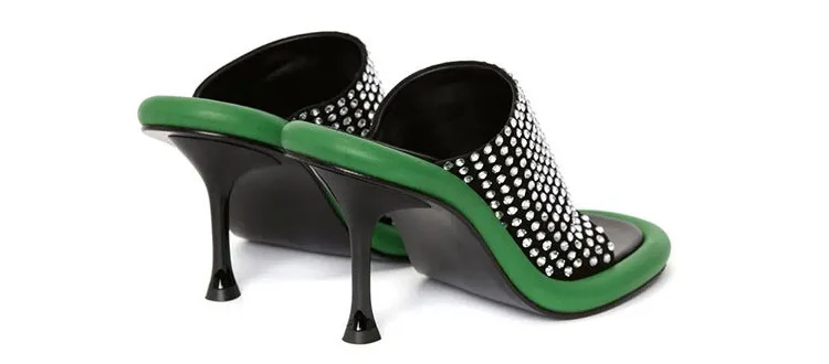 Summer New Round Toe Open Toe Color Matching Stiletto Mule Slippers Thick Bottom Soft Surface Large Size Catwalk Sandals Leisure