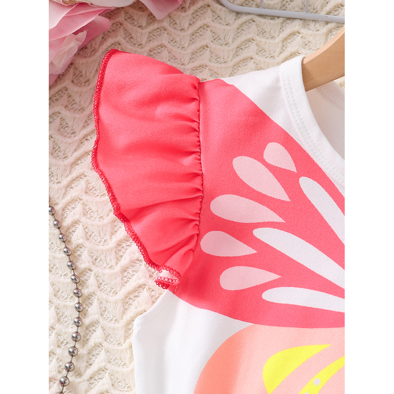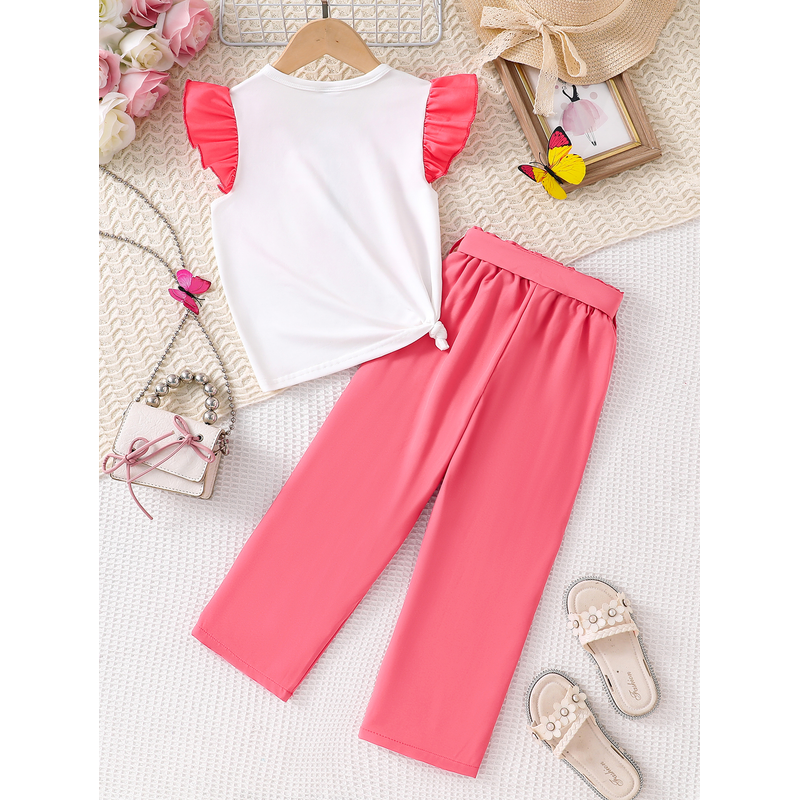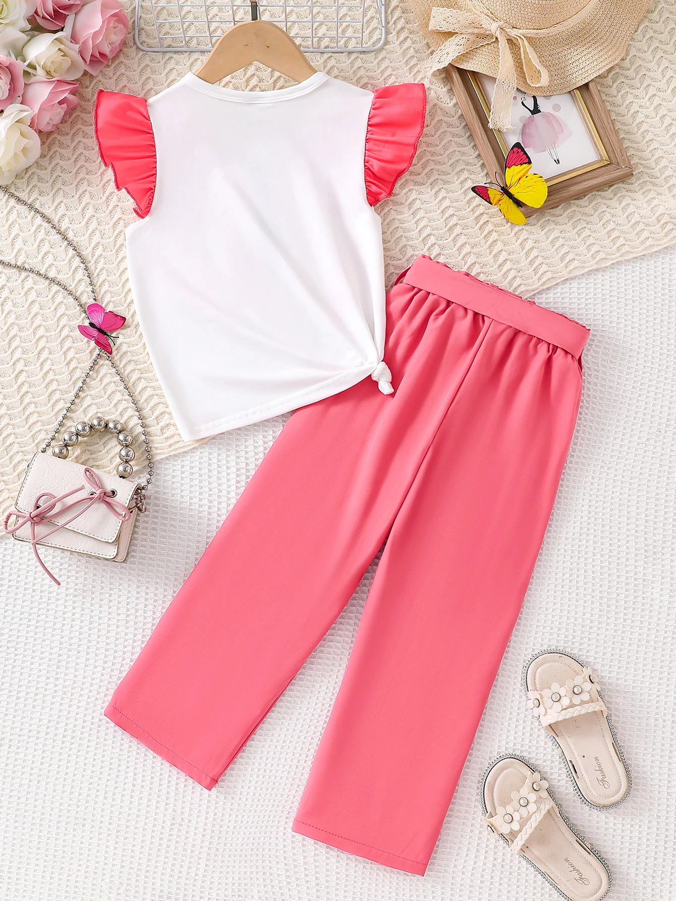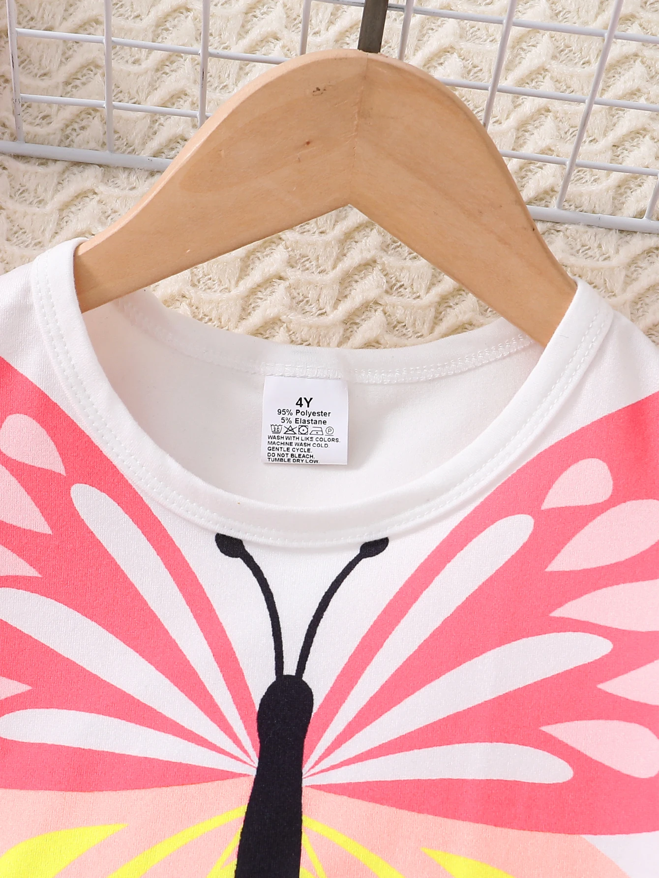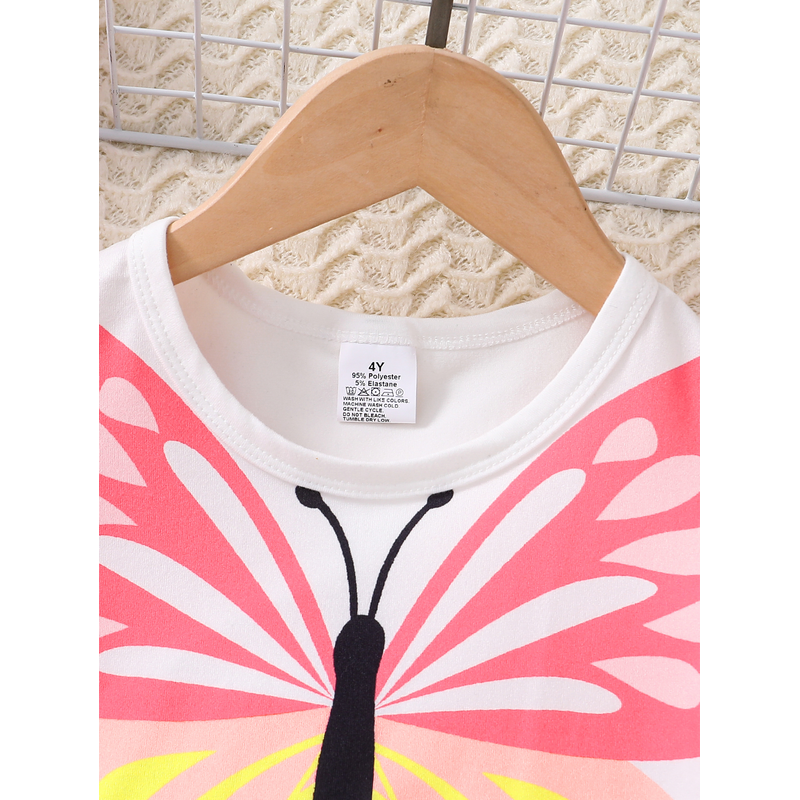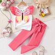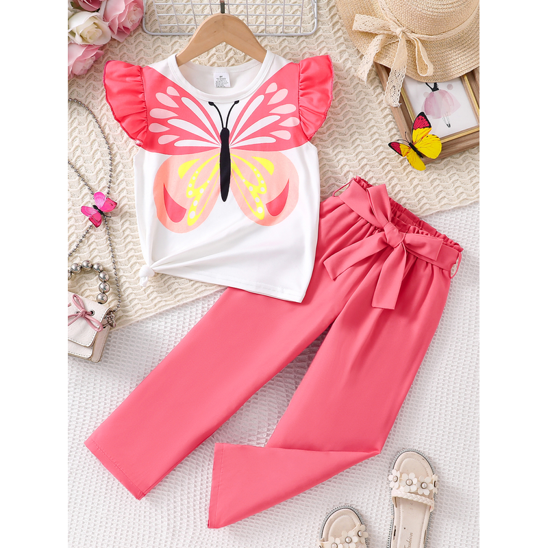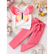 Summer new style casual children's set, breathable girls' butterfly print T-shirt and straight-leg pants two-piece set