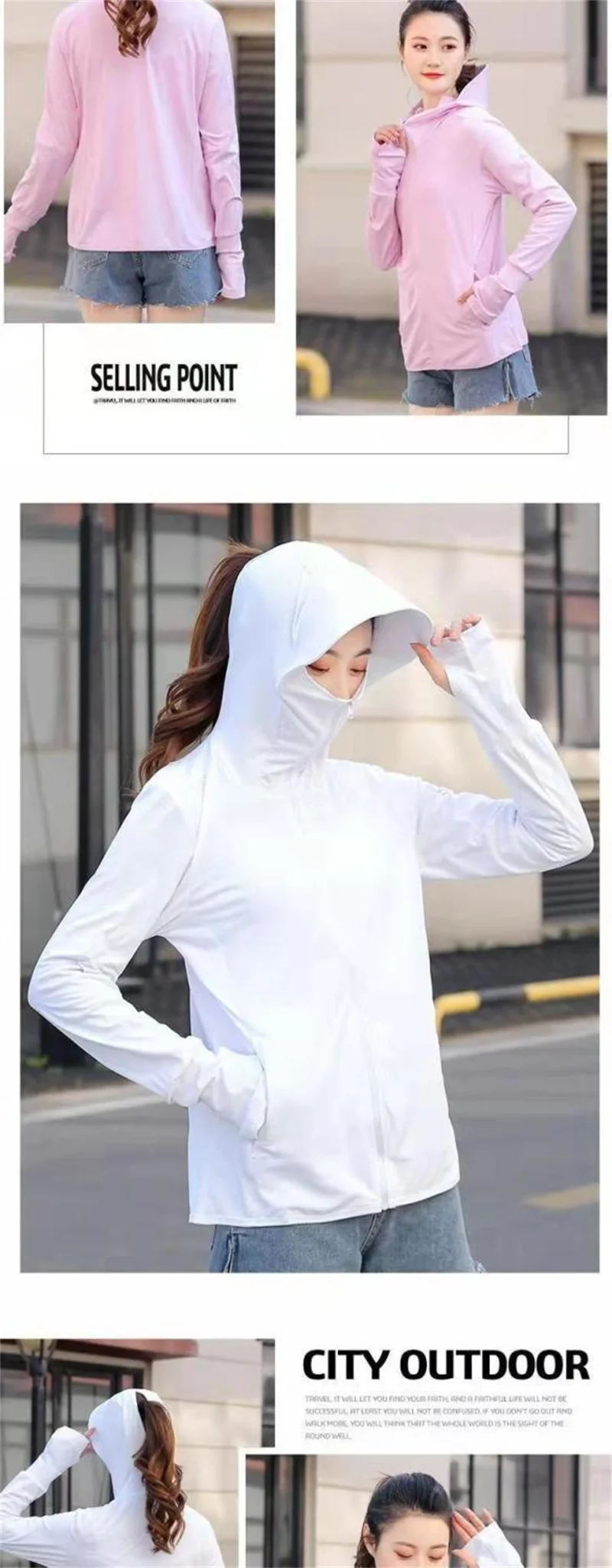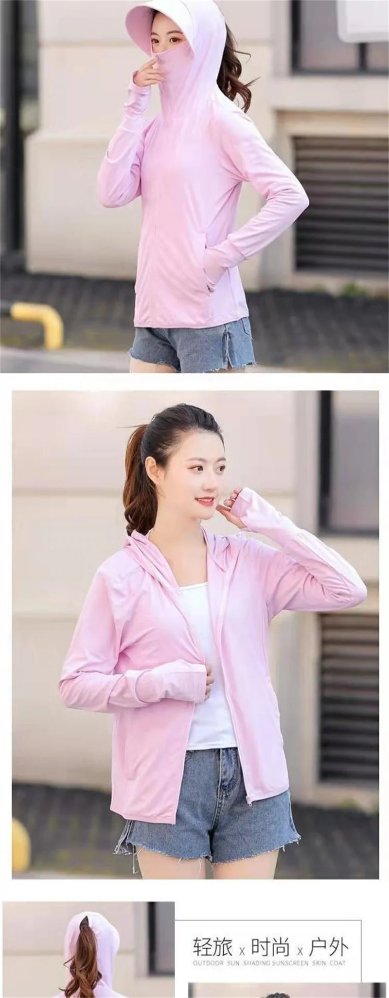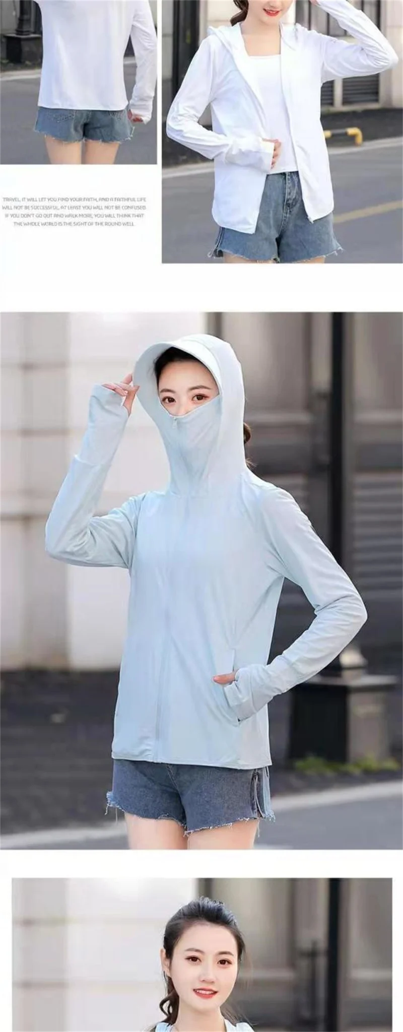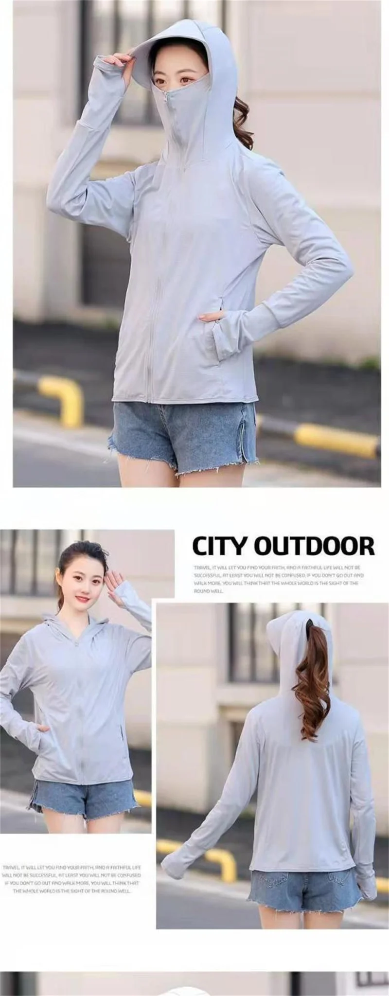 Summer New Women Short Hooded Ice Silk Sunscreen Clothes Tops 2025 Female Thin Style Ultraviolet-proof Sunscreen Jacket Coat
