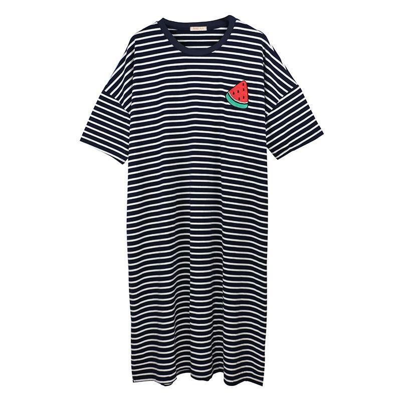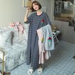 Summer Pajama Dress Female Short-Sleeved Cartoon Homewear Lengthened Plus Size Striped Student Pajamas Easy To Wash Long Clothes