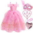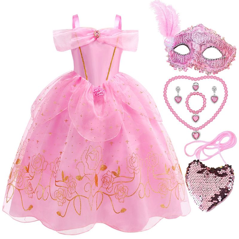 Summer Pink Aurora Princess Dress For Girl Cosplay Sleeping Beauty Cute Sling Sleeveless Costume Elegant Dress+ Accessories Set