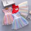 Summer Princess Unicorn Party Dress for Girls with Flying Sleeves Children's Clothing 3-8 Years Old Baby Dresses