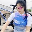 Summer Road Bike Cycling Clothing Women's Quick-drying White And Blue XL