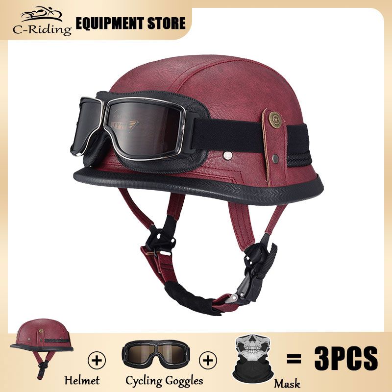 Retro and classic German style motorcycle helmet