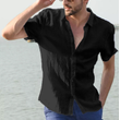 Summer Short-sleeved Shirt Casual Button Tops Men Clothing Black 2XL