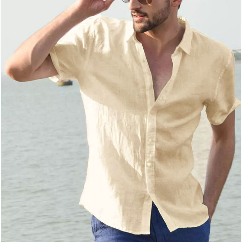 Summer Short-sleeved Shirt Casual Button Tops Men Clothing Grey 2XL