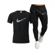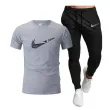 Summer Sports Men's Jogging Pure cotton T-shirt + thin long Pants 2-piece breathable and quick-drying set
