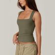 Summer Square-neck Tank Vest Ins Fashion Slim Solid Sleeveless Tops For Women Clothing Rose Red 2XL