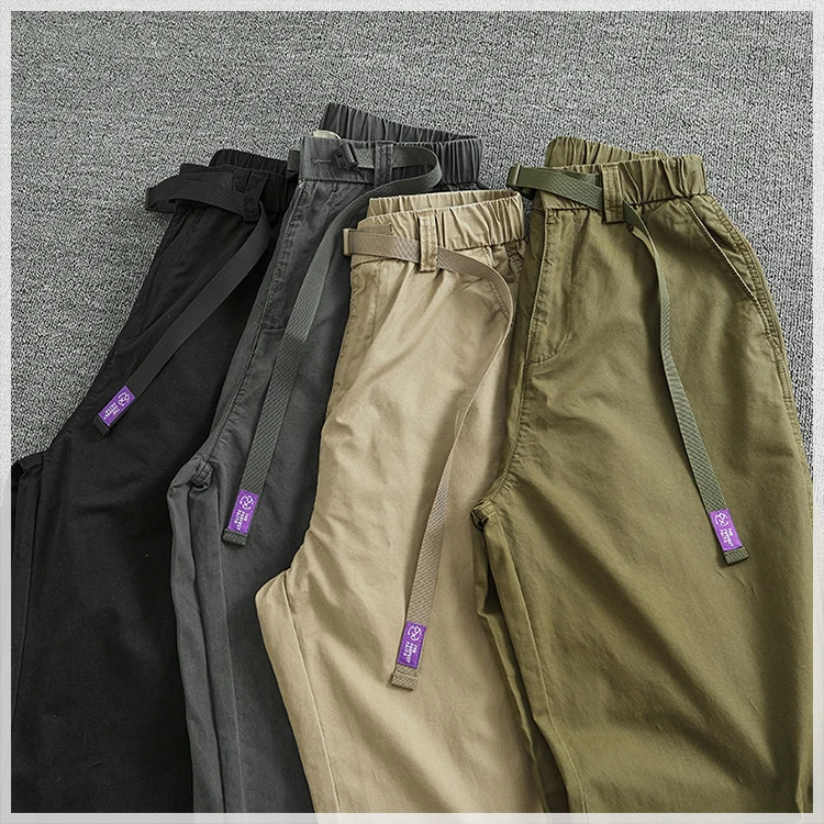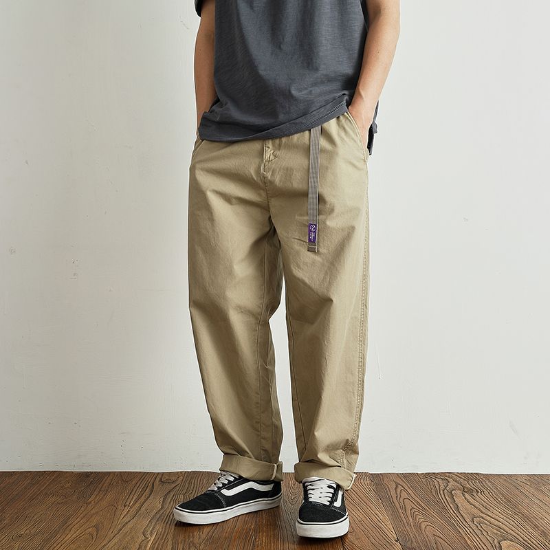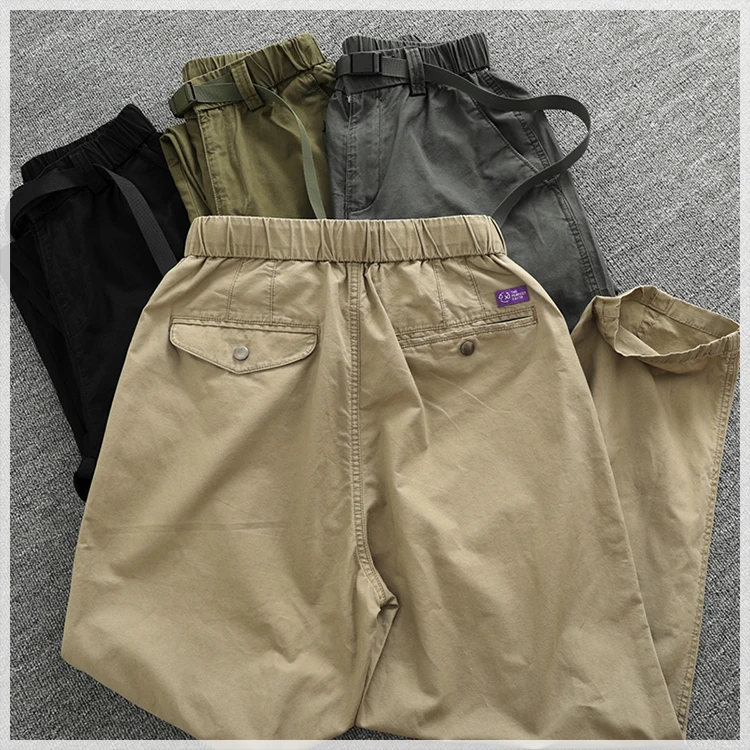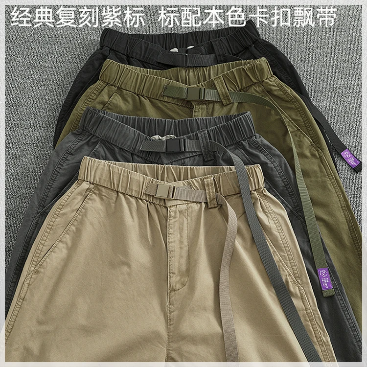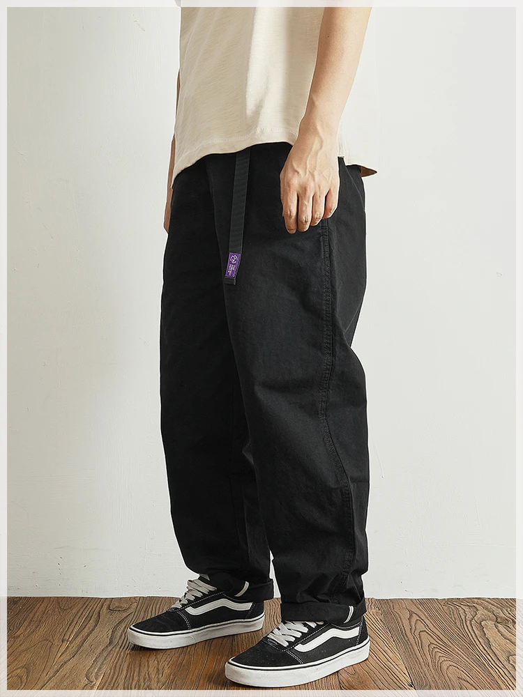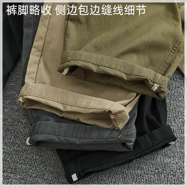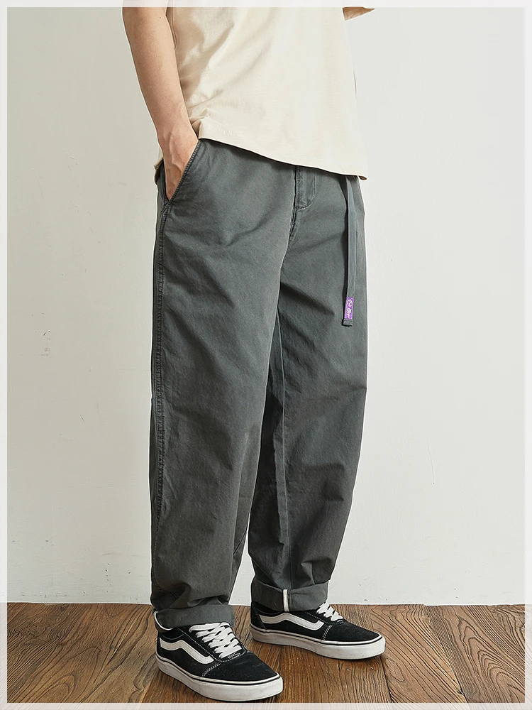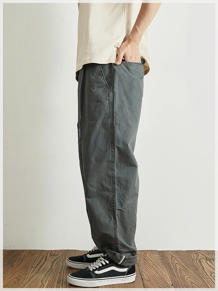 Summer thin casual pants men's straight straight tube loose conical overalls all cotton wash re-engraved purple mark daddy pants