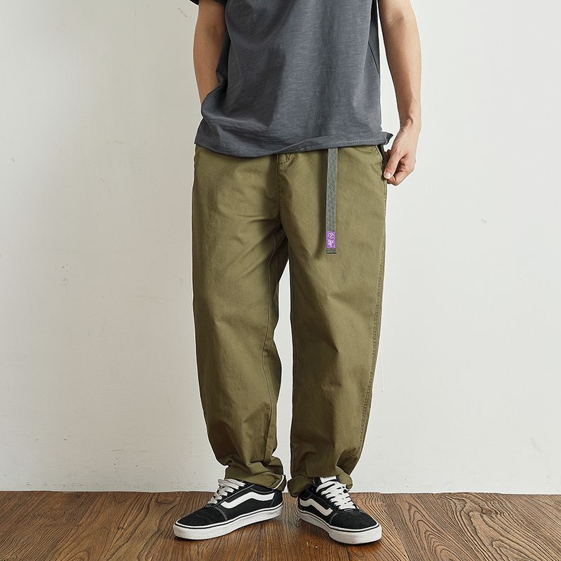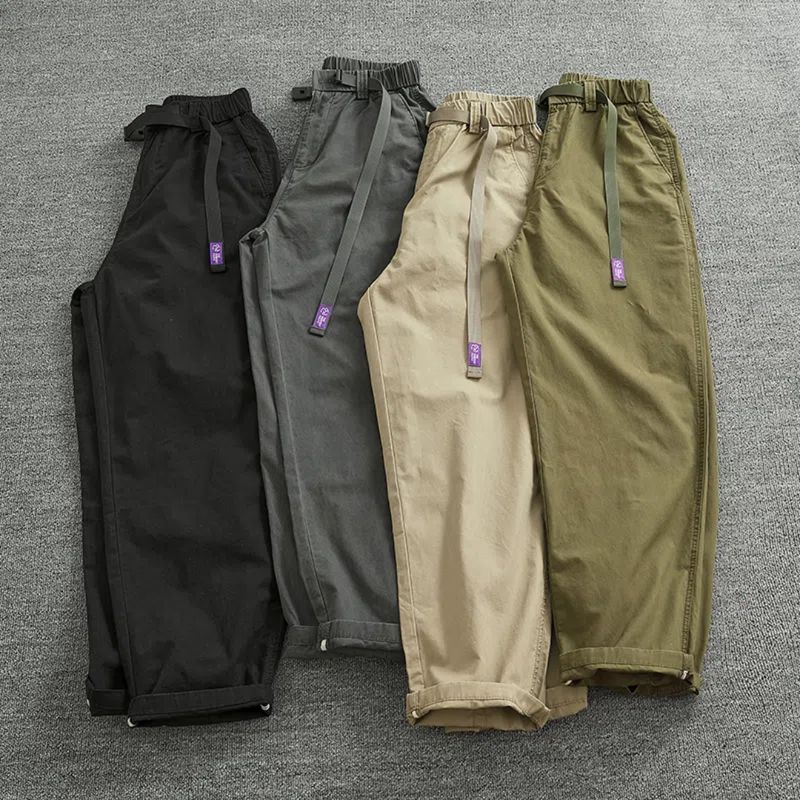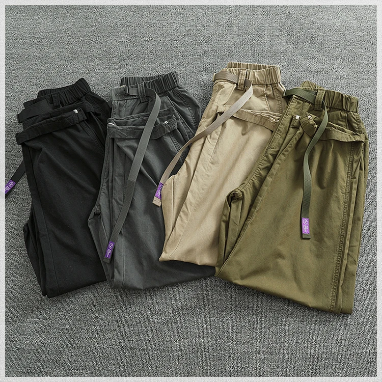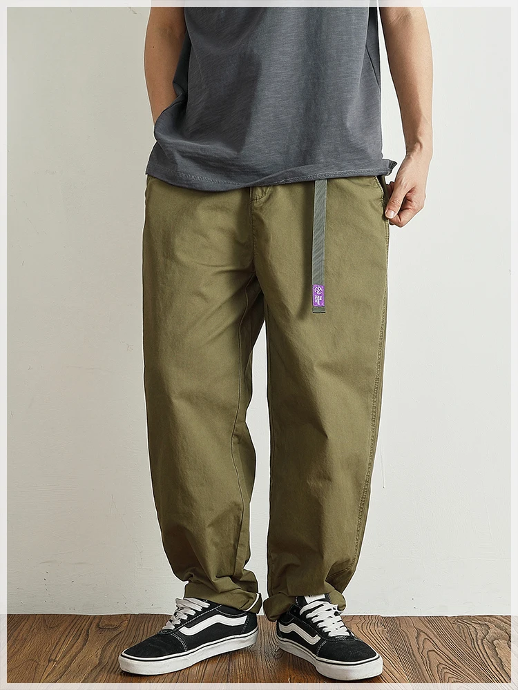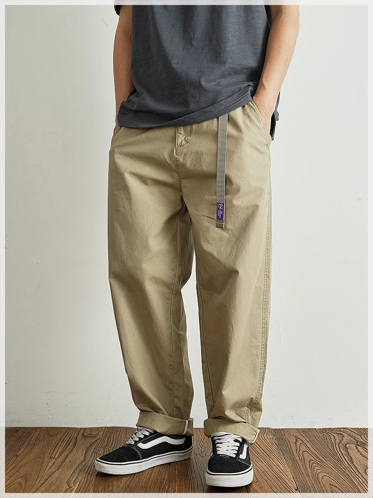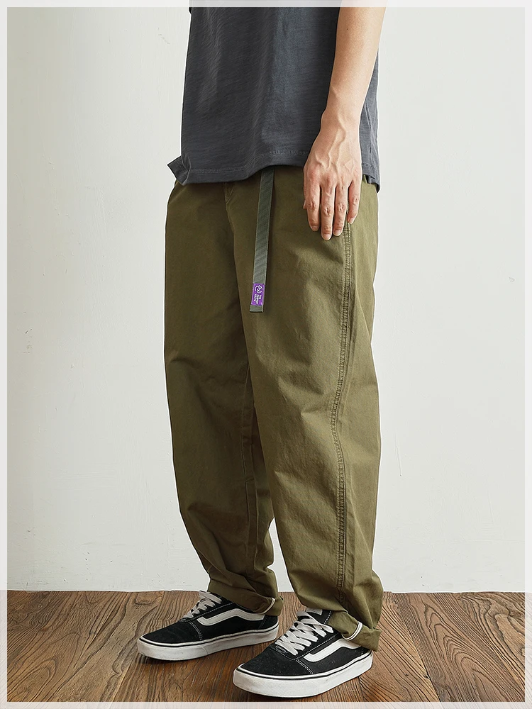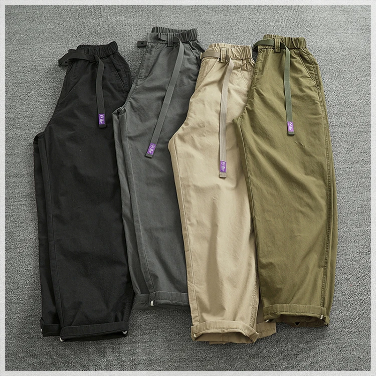 Summer thin casual pants men's straight straight tube loose conical overalls all cotton wash re-engraved purple mark daddy pants