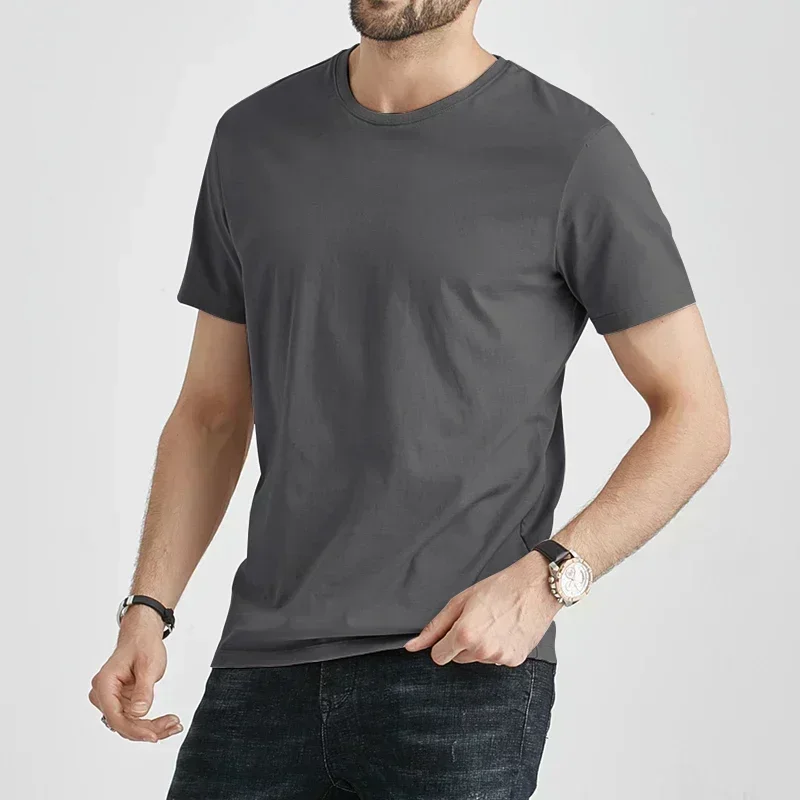 Summer Trendy Brand Men's Clothes Business Casual Short-sleeved T-shirt Fit and Versatile Crew Neck Top Breathable T-shirt