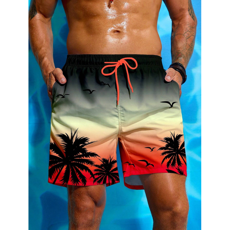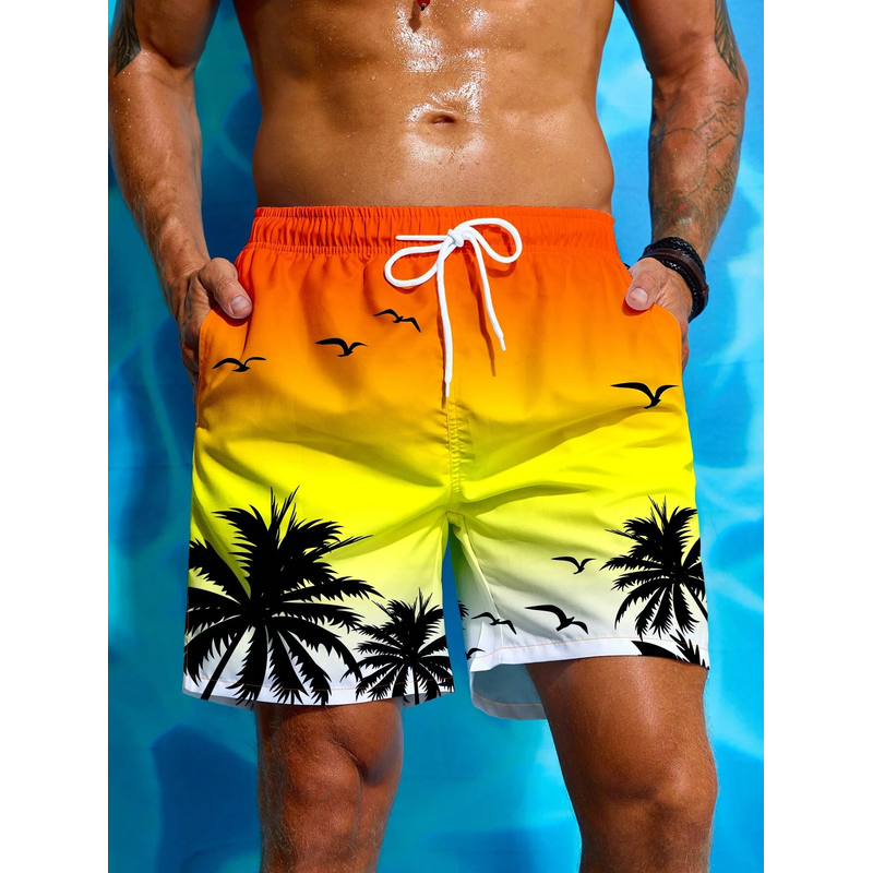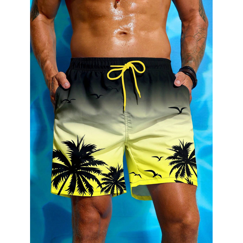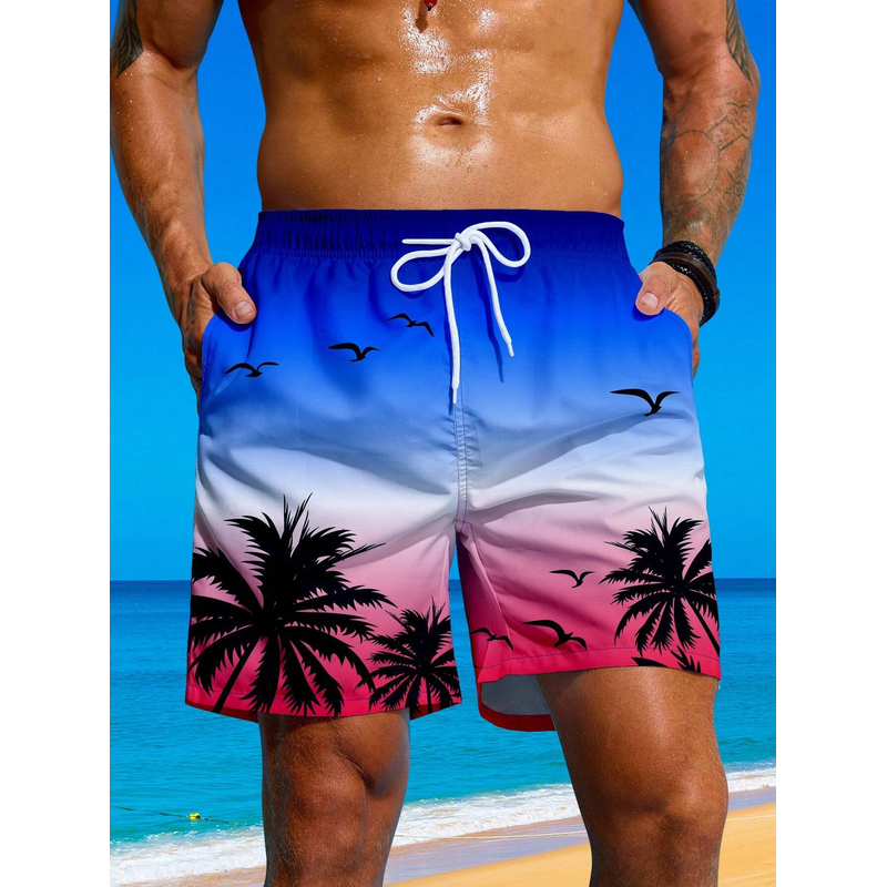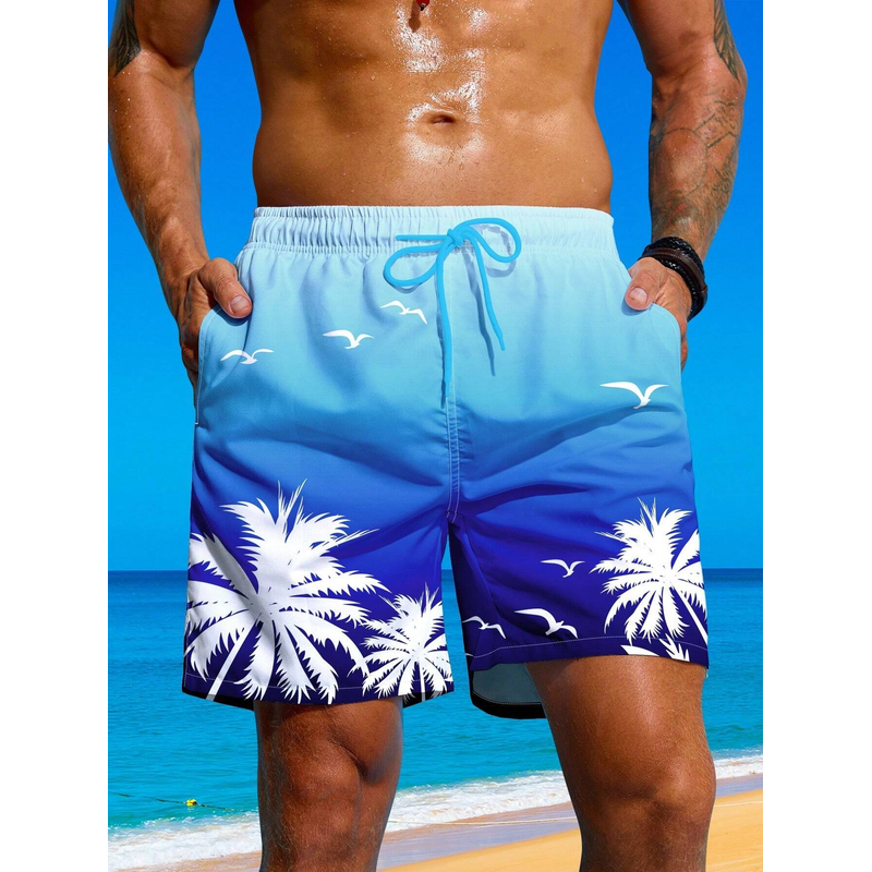Summer Vacation Men's Palm Tree Print Drawstring Waist Board Shorts Fashion Swim Trunks 3D Print Breathable Short Streetwear