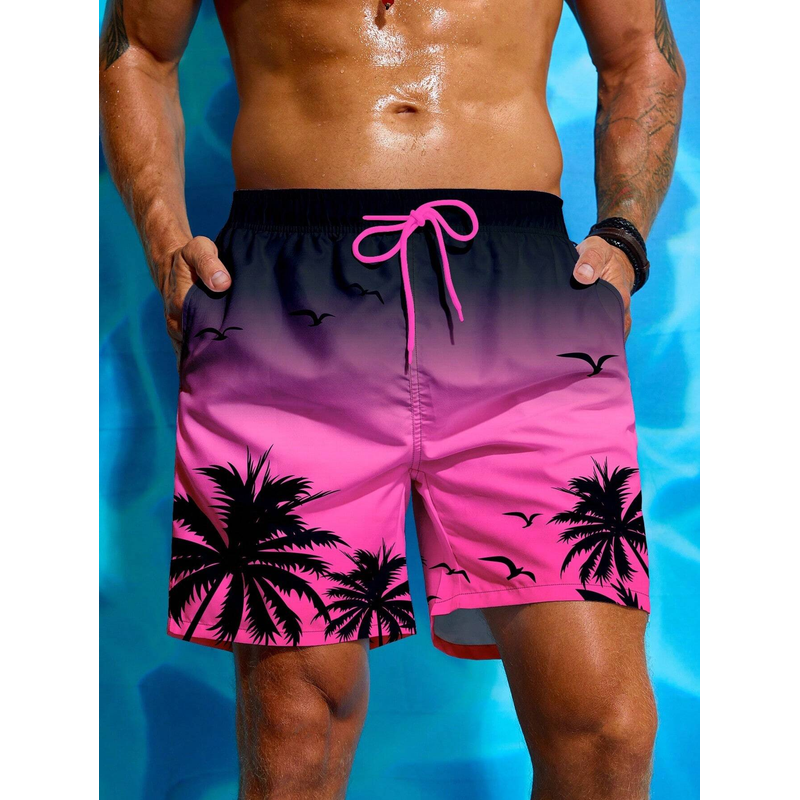 Summer Vacation Men's Palm Tree Print Drawstring Waist Board Shorts Fashion Swim Trunks 3D Print Breathable Short Streetwear
