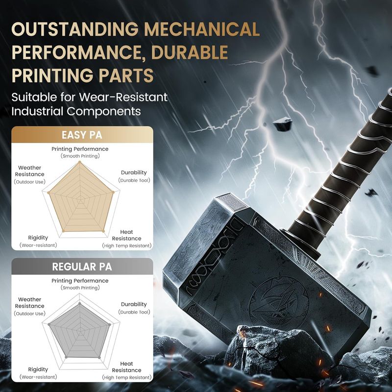 Easy PA Filamnet | 1KG/Roll | 1. Good toughness, resistant to drops and impacts; 2. High strength, sturdy and durable; 3. No cracking or warping; 4. Good temperature resistance |
