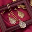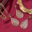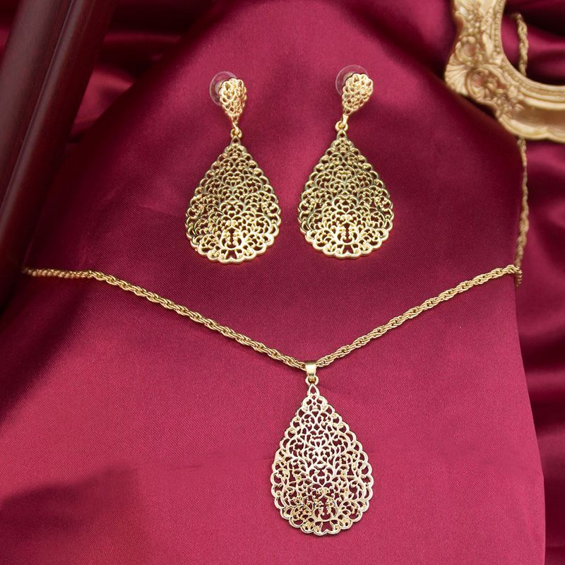 Sunspicems Gold Color Arabian Women Jewelry Set Hollow Teardrop Earrings Pendant Necklace Moroccan Bridal Bijoux Beach Jewel
