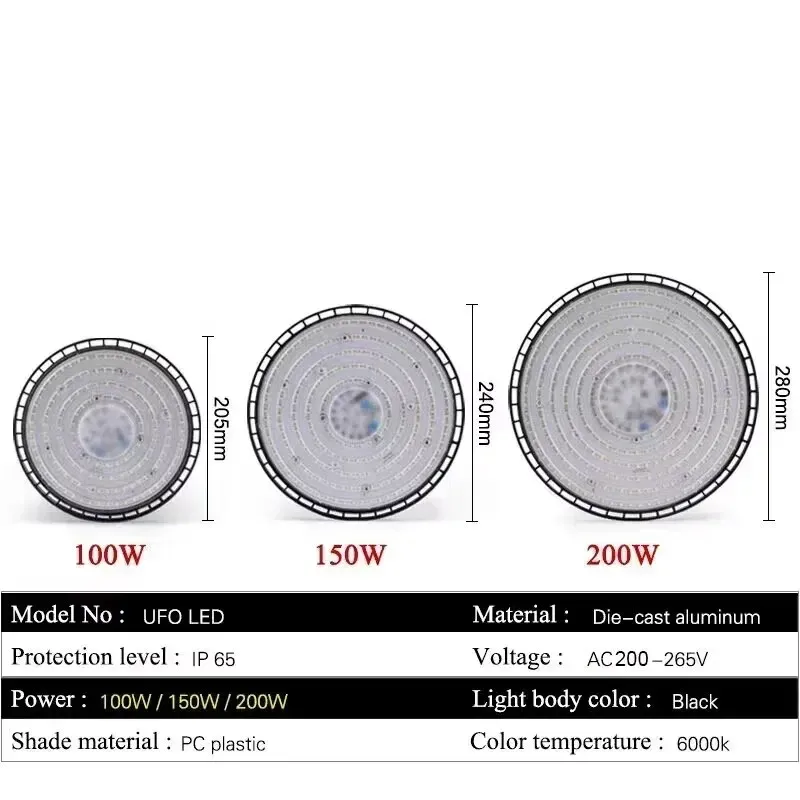 Super Bright 100/150/200W UFO LED High Bay Lights Waterproof Commercial Industrial Market Warehouse Garage Workshop Garage Lamps