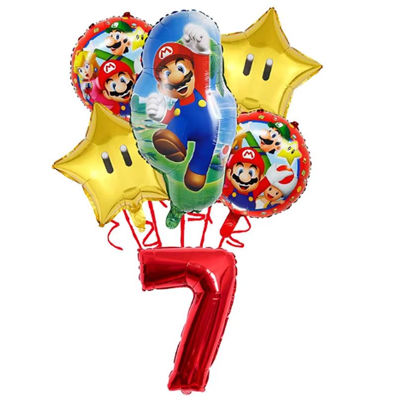 Super Mario Bros Birthday Party Decoration Aluminum Foil Balloon For Kid Event Tableware Full Table Accessories Plate Cup Gifts