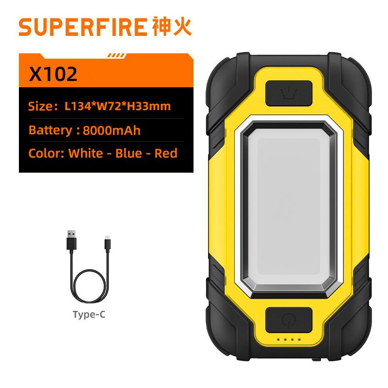 SUPERFIRE X102 Portable LED Work Light With Double Strong Magnets Adjustable Rechargeable Flashlight For Charging Mobile