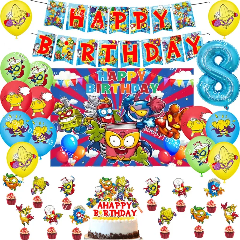 Superthings Birthday Party Decoration Banner Balloon Backdrop Superzings Tableware Cake Toppers Party Supplies Baby Game Toys
