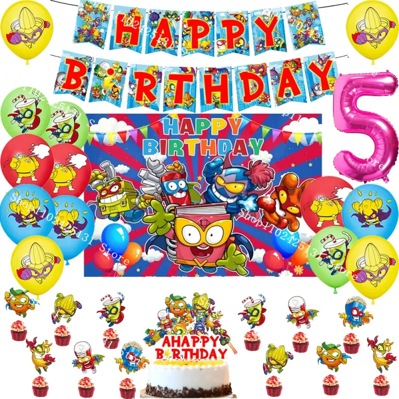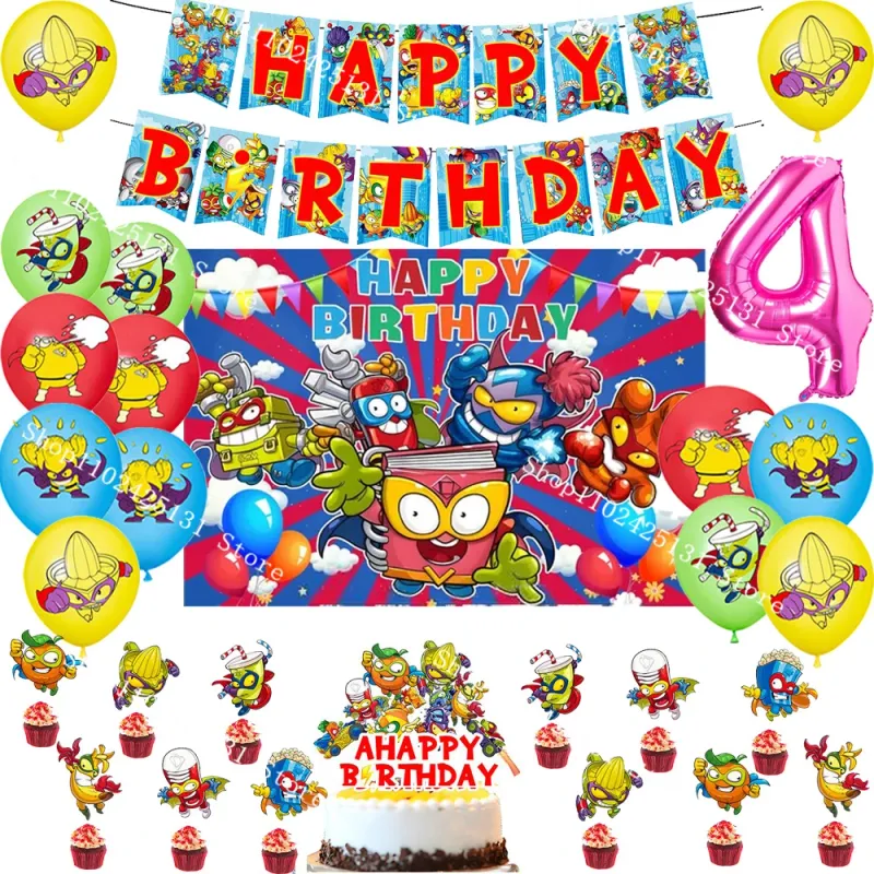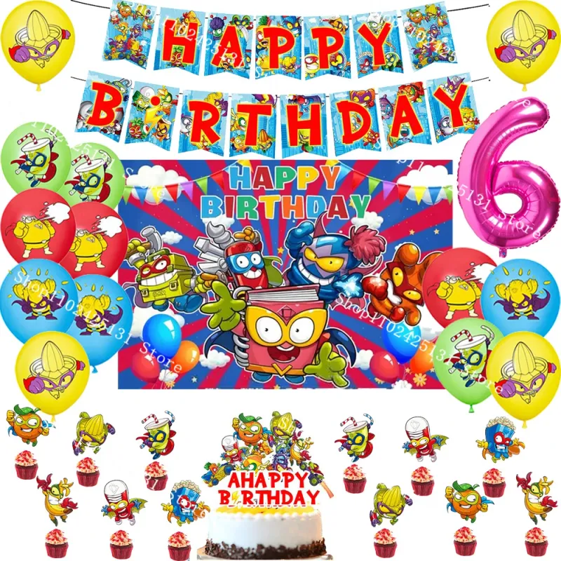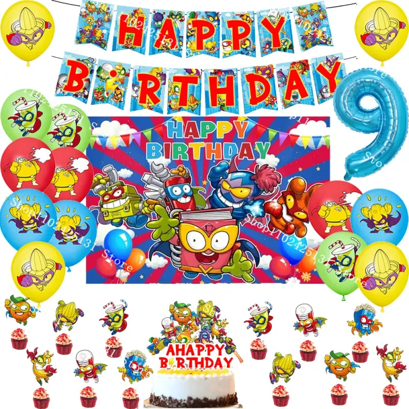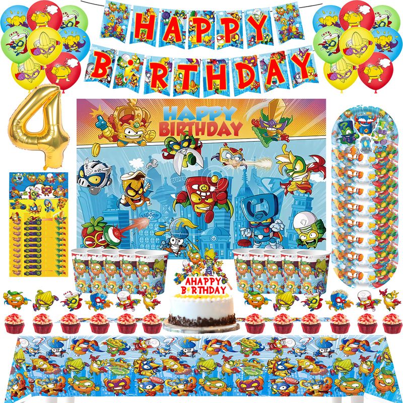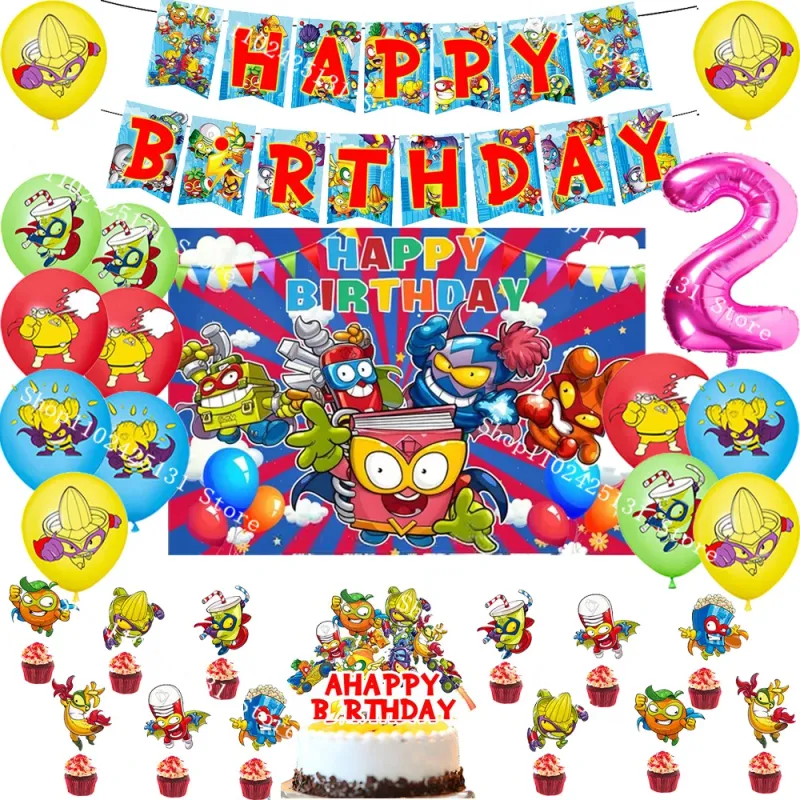 Superthings Birthday Party Decoration Banner Balloon Backdrop Superzings Tableware Cake Toppers Party Supplies Baby Game Toys