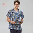 Surgical Gown Printed V-neck Pet Doctor Beauty Hospital Work Clothes Flower Dog Blue 2XL Pants