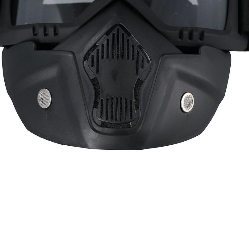 Type: Safety Face Mask with Detachable Goggles Style: Full frame Gender: Unisex Adults Size: Frame Width 7.9", Frame Height 3.9", Total Length 7.3" Fit over glasses with size within: 12.7 cm x 4 cm / 4.9 inch x 1.5 inch (L*W) Materials: Frame: TPU, Lens: PC Color: Lens: Silver, Yellow, Colorful, Grey, Clear Features: Windproof, Wear-resistant, Anti-UV, Detachable Goggles Use:Laboratory, Carpentry. Painting, Skiing, Snowboard, Mountaineering, Motorcycle, Cycling and other outdoor sports. Package Includes: 1 X Face Mask with Detachable Goggles