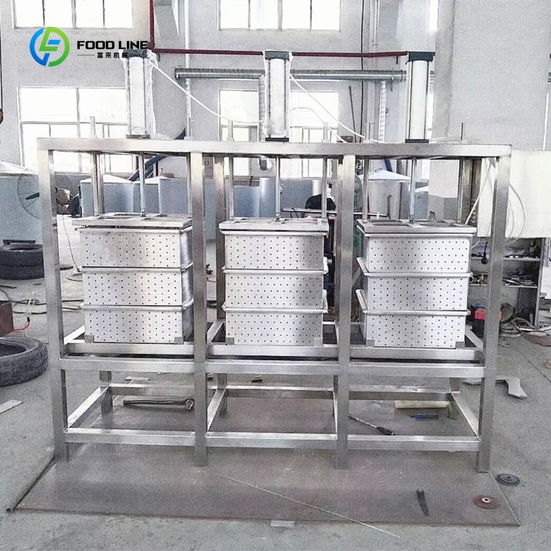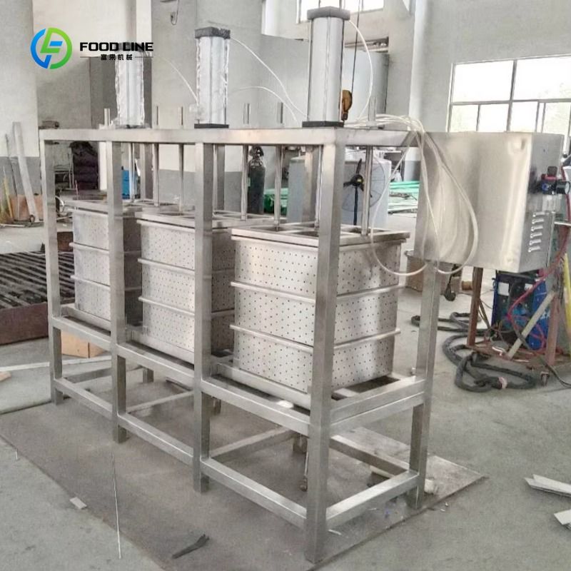 6 Pneumatic Cylinders+ 18 Cheese Molds Every Cylinder Will Press 3 Molds. Manually Control With Rotating The Switch Cheese Mold Size:390x390x120mm Dimension:1770*1380*1900mm Weight:300kg The Main Material Is Fully Sus304. The Whole Machine Is Composed Of Bracket, Cylinder, Filter Frame, Filter Screen. One Air Cylinder Press Automatically, So That The Moisture And Whey In The Wet Cheese Are Discharged By The Filter Screen