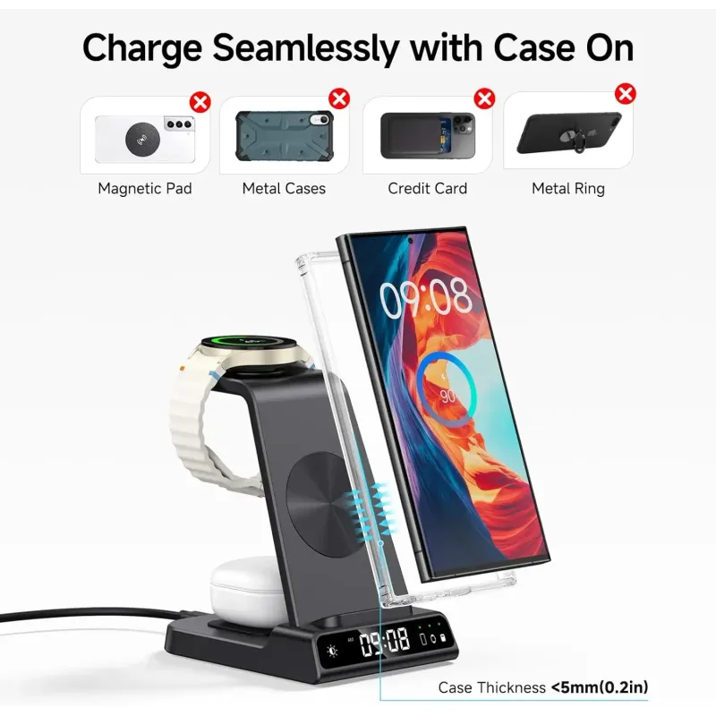 SwanScout C01 Charging Station for Samsung S25 S24 Ultra S23 Z Flip Z Fold Wireless Charger for Galaxy Watch 8 7 for Buds 3 Pro