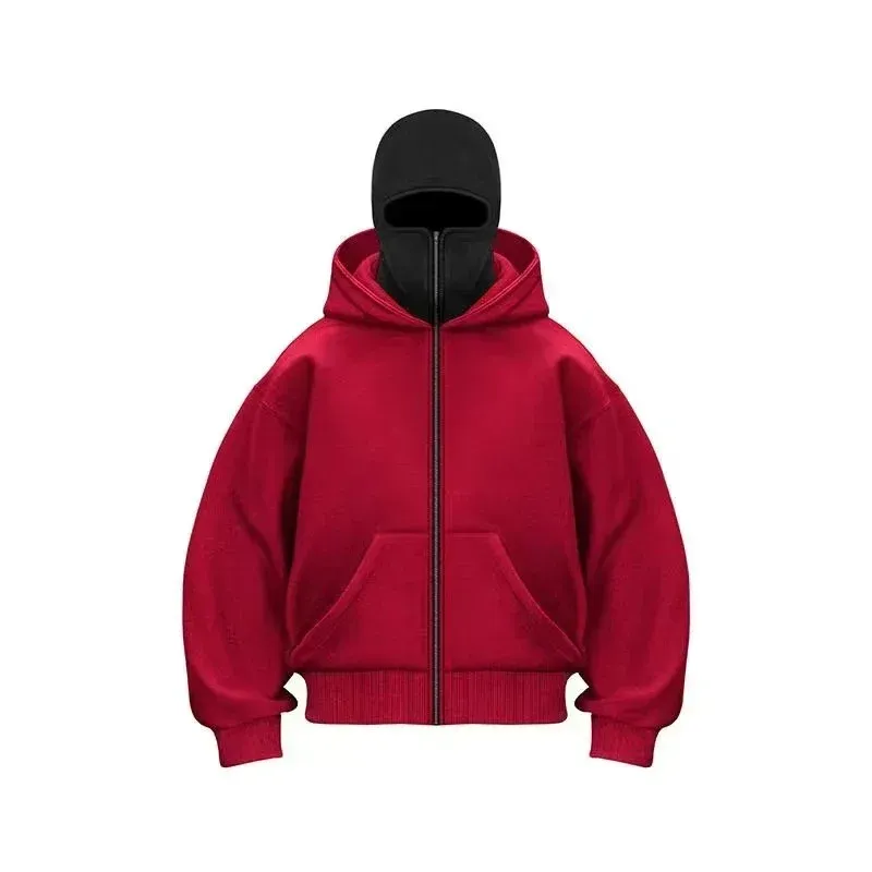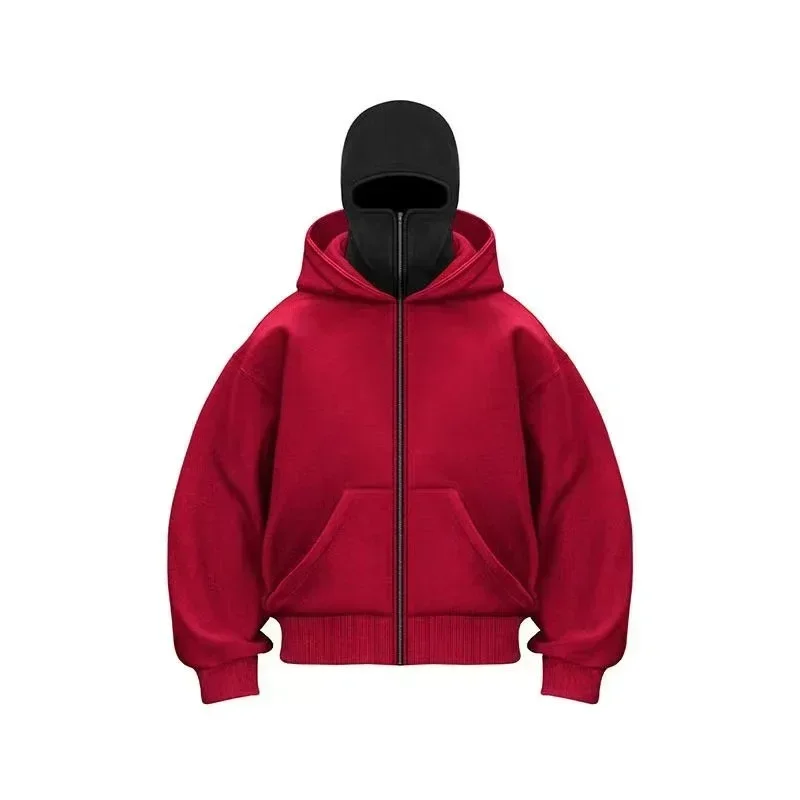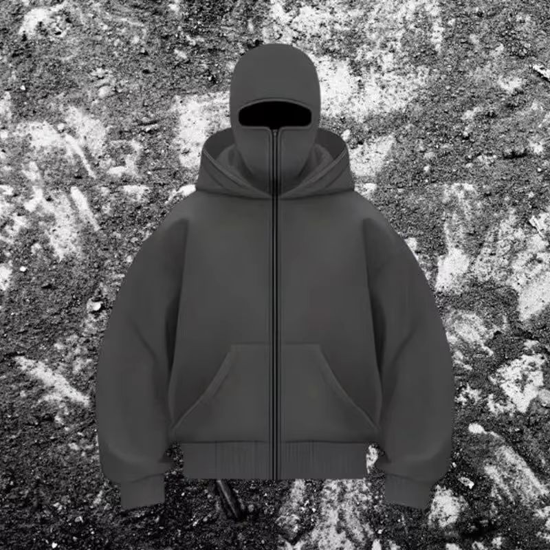 Sweatshirt with Hooded Face Mask Zipper Design Men Balaclava Zip Hoodie Autumn Winter Warm Sports Jacket Outdoor Activities