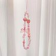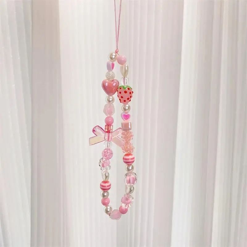 Sweet and Cute Pink Strawberry Mobile Strap Phone Chains For Women Pearl Chain Phone Pendant Charm Key Anti-Lost Lanyard Jewelry