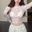 Sweet Cool Girl Dopamine Print Long Sleeve Mesh Top White Average Size
