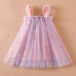Sweet Girls Summer Flying Sleeve Bow Sequin Dress 2-6Y Kids Birthday Party Pink Fluffy A-line Princess Dress for Cute Baby Girl