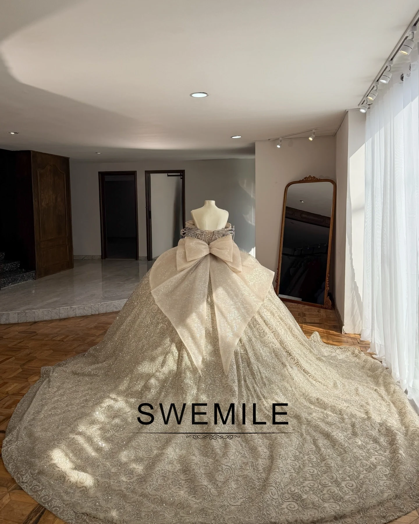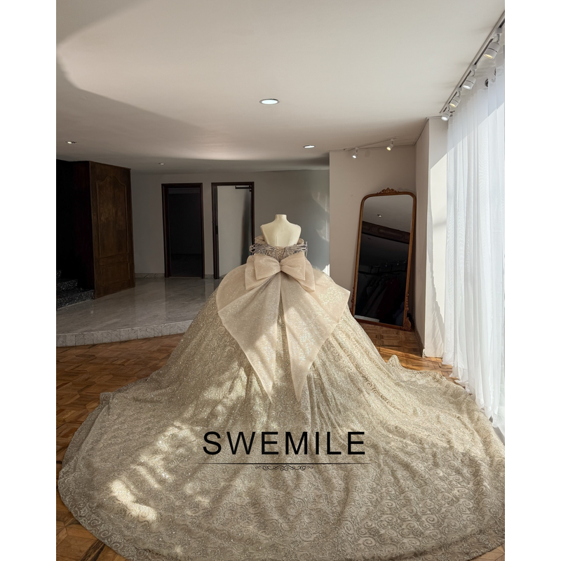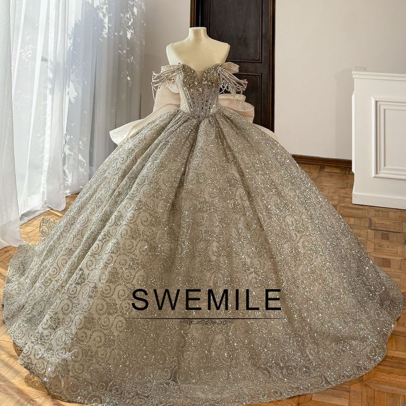 SWEMILE Luxurious Crystals Quinceanera Dresses for 15 Bow Off the Shoulder Lace up vestidos de 15 quinceañera 2026 Customized