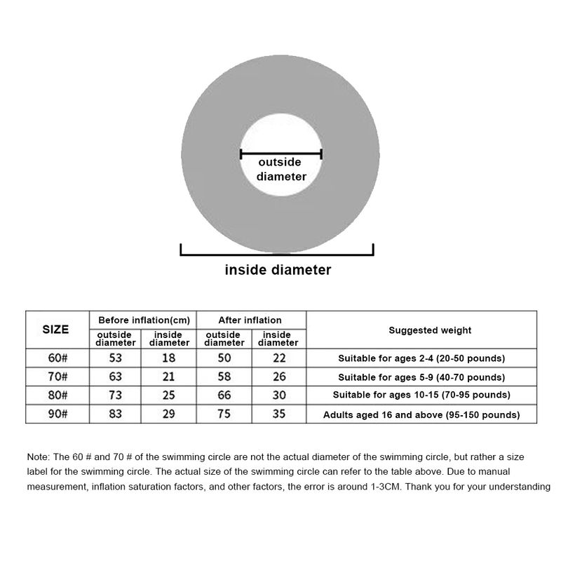 1. Inflation Valve Technology: Innovatively designed with an internal flap to prevent air leakage, our inflatable swim ring ensures a secure and buoyant experience. The sophisticated valve system guarantees easy inflation and deflation, offering users peace of mind and extended water playtime without the worry of unexpected deflation. Specification: Origin: Mainland China Material: PVC