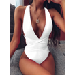 Swimsuit Women Push Up Lace Tie Bodysuit Brazil Deep V Neck Halter Swimsuit Swimwear White S