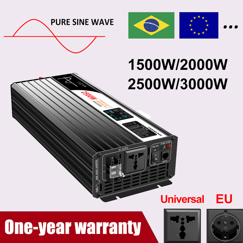Swipower 1500W 2000W 2500W 3000W pure sine wave solar power inverter 12V/24V/48V DC to 110V 220V AC LCD screen