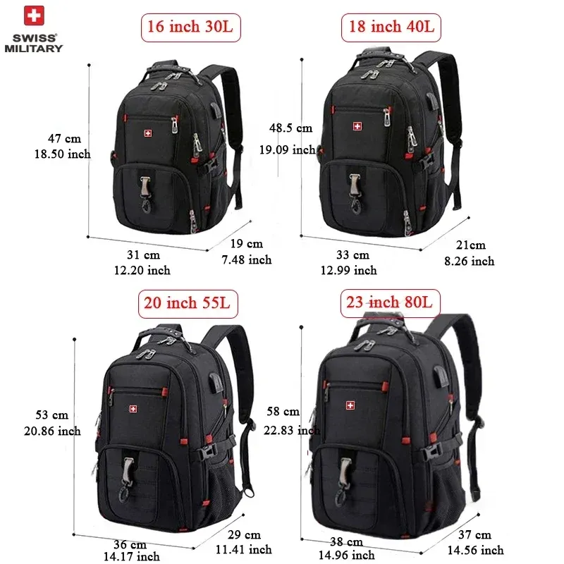 SWISS 17" Laptop Backpack Waterproof USB Charge Port Swiss-style Multifunctional Rucksack Schoolbag Mochila Hiking Travel bag