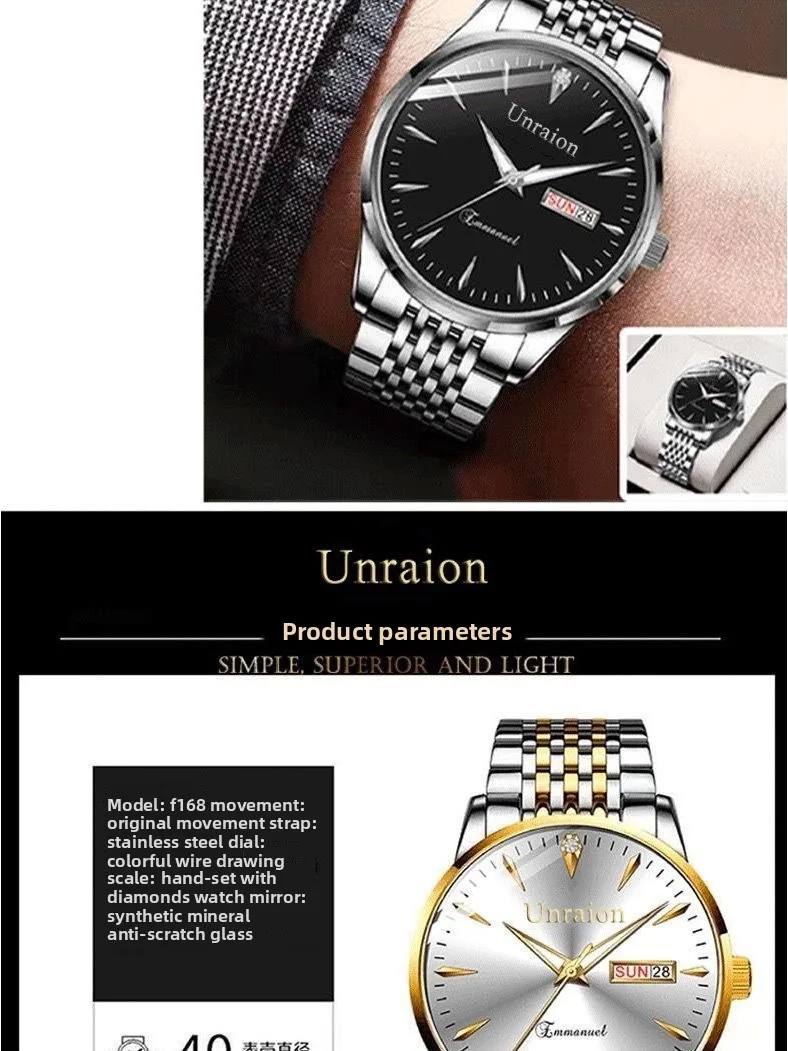 Swiss Fully Automatic Movement Waterproof Luminous Dual Calendar Non Mechanical Men's Watch Male Student Korean Watches for Men