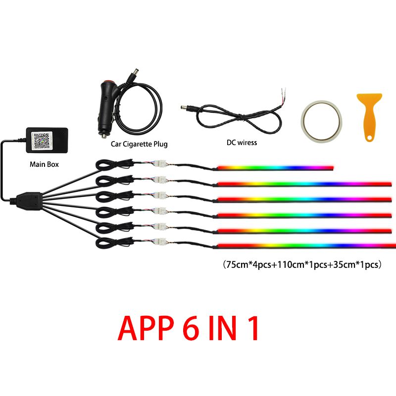 - Item Type : 6 in 1 [ 6 Pcs LED light strip(75cm*4+110cm*1+35cm*1)  +Car cigarette plug]