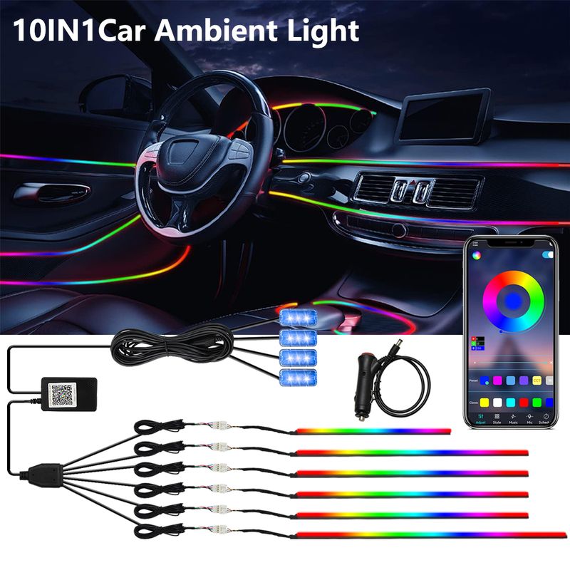 10 in 1 Led Car Atmosphere Light Symphony Interior Acrylic Strip App Control Decorative Ambient Lamp With Cigarette Lighter