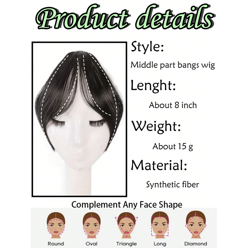 Synthesis Wig Middle-Part Bangs Hair Extensions Clip In Forehead Natural Seamless French Oblique Bangs Eight-Character Bangs