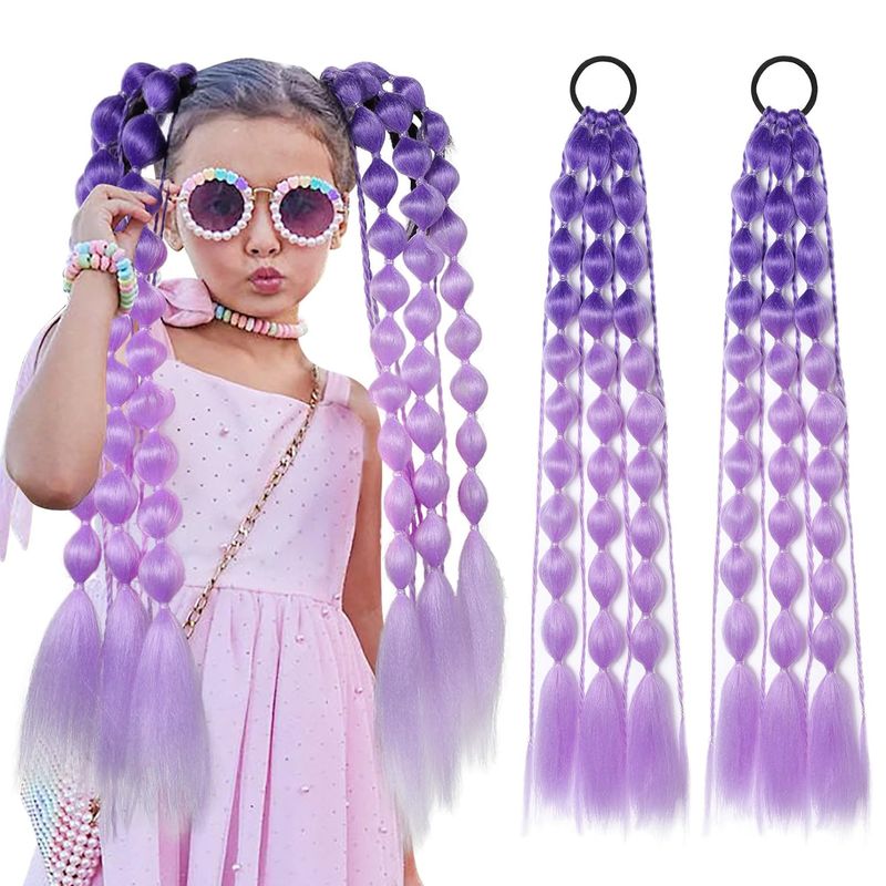 Synthetic 2Pcs Lightweight Colored Hair Extensions for Kids Bubble Ponytail with Hair Tie Ombre Crazy Hair Day Accessories