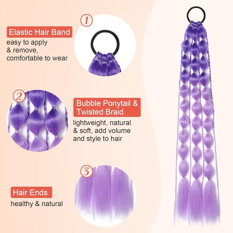 Synthetic 2Pcs Lightweight Colored Hair Extensions for Kids Bubble Ponytail with Hair Tie Ombre Crazy Hair Day Accessories