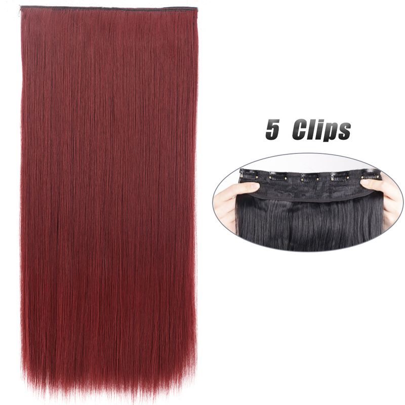 Synthetic 5 Clip In Hair Extensions Long Straight Hairstyle Hairpiece Black Brown Blonde 80CM Natural Fake Hair For Women