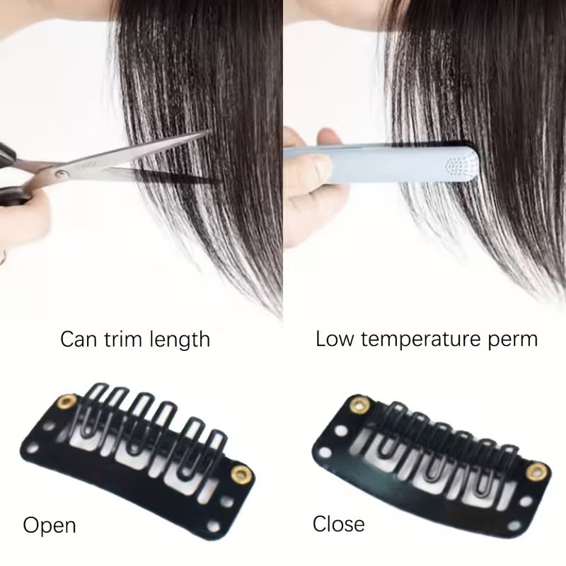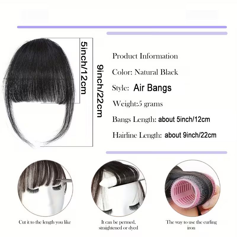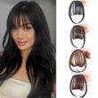 Synthetic Air Bangs Sideburns Short Straight Clip in Bangs Fake Front Hairpiece for Women Daily Use Easy to Wear