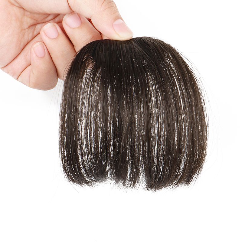 Synthetic Air Bangs Sideburns Short Straight Clip in Bangs Fake Front Hairpiece for Women Daily Use Easy to Wear