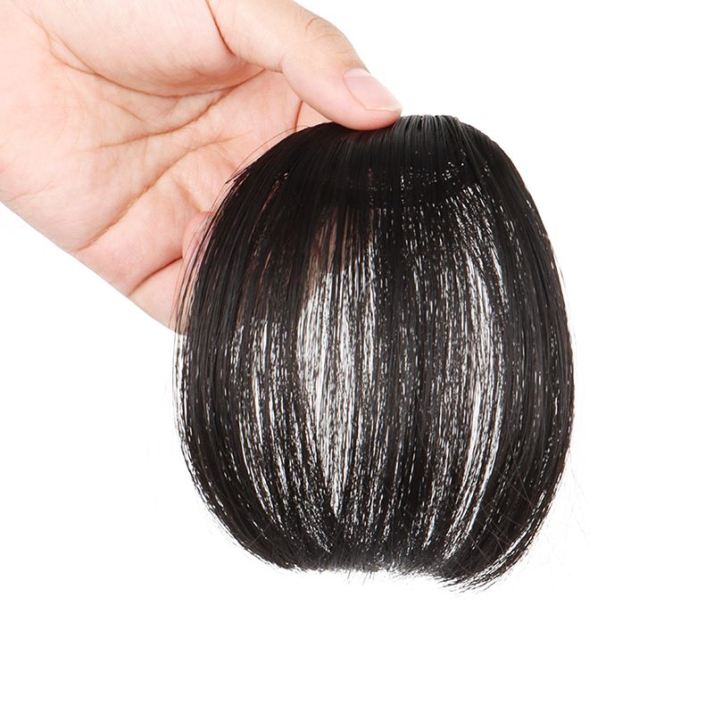 Synthetic Air Bangs Sideburns Short Straight Clip in Bangs Fake Front Hairpiece for Women Daily Use Easy to Wear