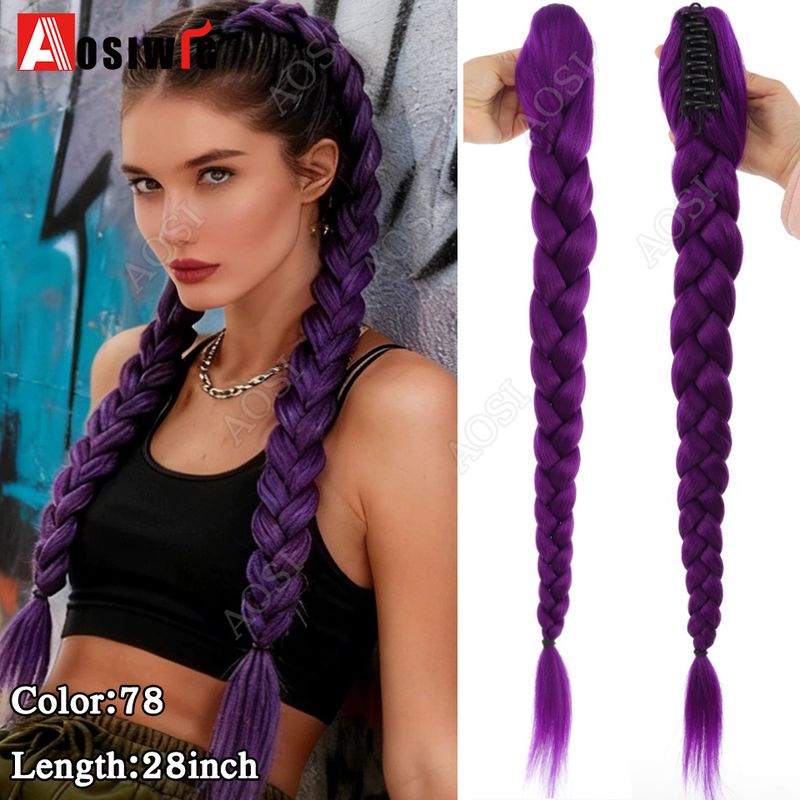 Synthetic Braided Purple Hair Ponytail Costume Hairstyle 26inch Long Ponytail with Clips for Kids Girls Halloween Christmas