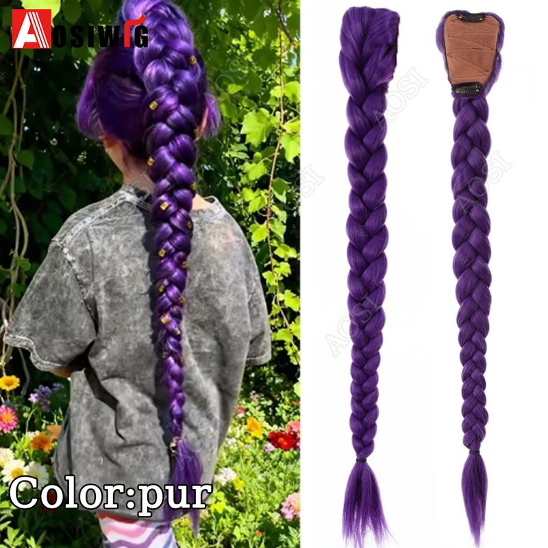 Synthetic Braided Purple Hair Ponytail Costume Hairstyle 26inch Long Ponytail with Clips for Kids Girls Halloween Christmas