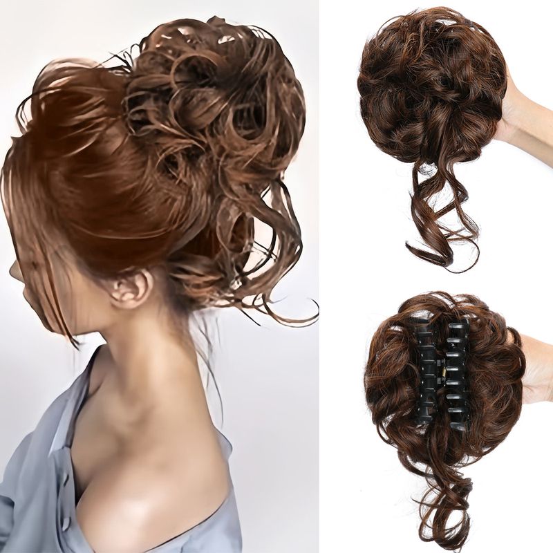 Synthetic Chignon Messy Bun Claw Clip in Hair Piece Wavy Curly Hair Bun Ponytail Extensions Scrunchie Hairpieces for Women